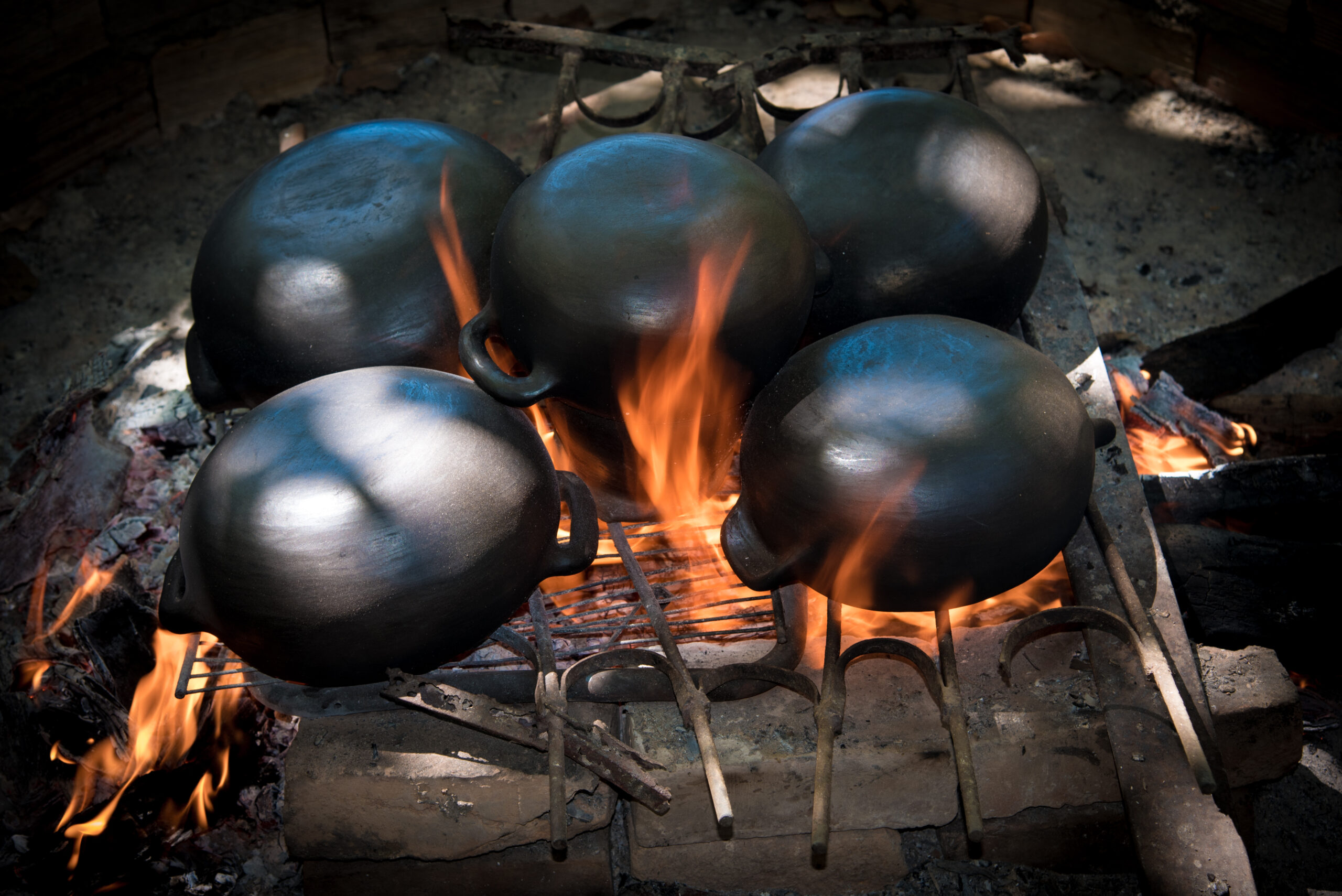 Um elemento distintivo de seu processo é o uso da folha de mangueira, um recurso próprio da região, como combustível durante a defumação, o que confere à cerâmica seus inconfundíveis tons negros e nuances defumadas.