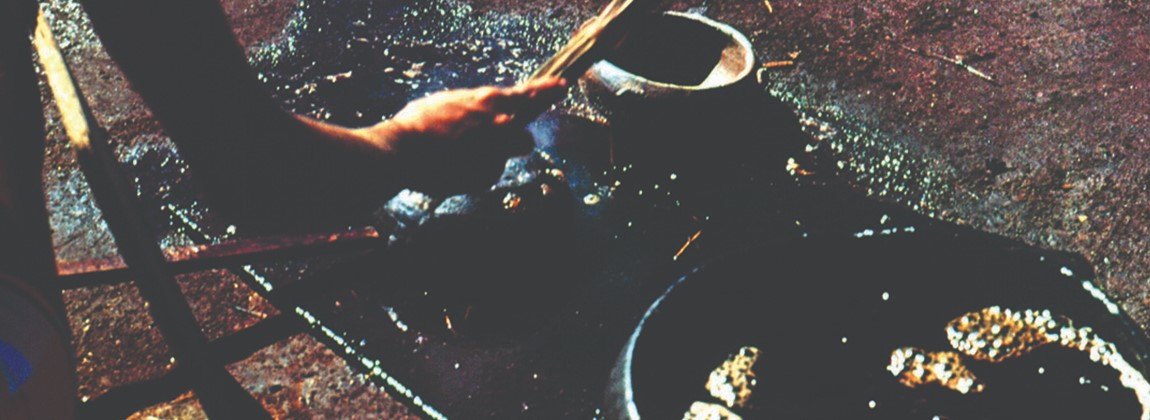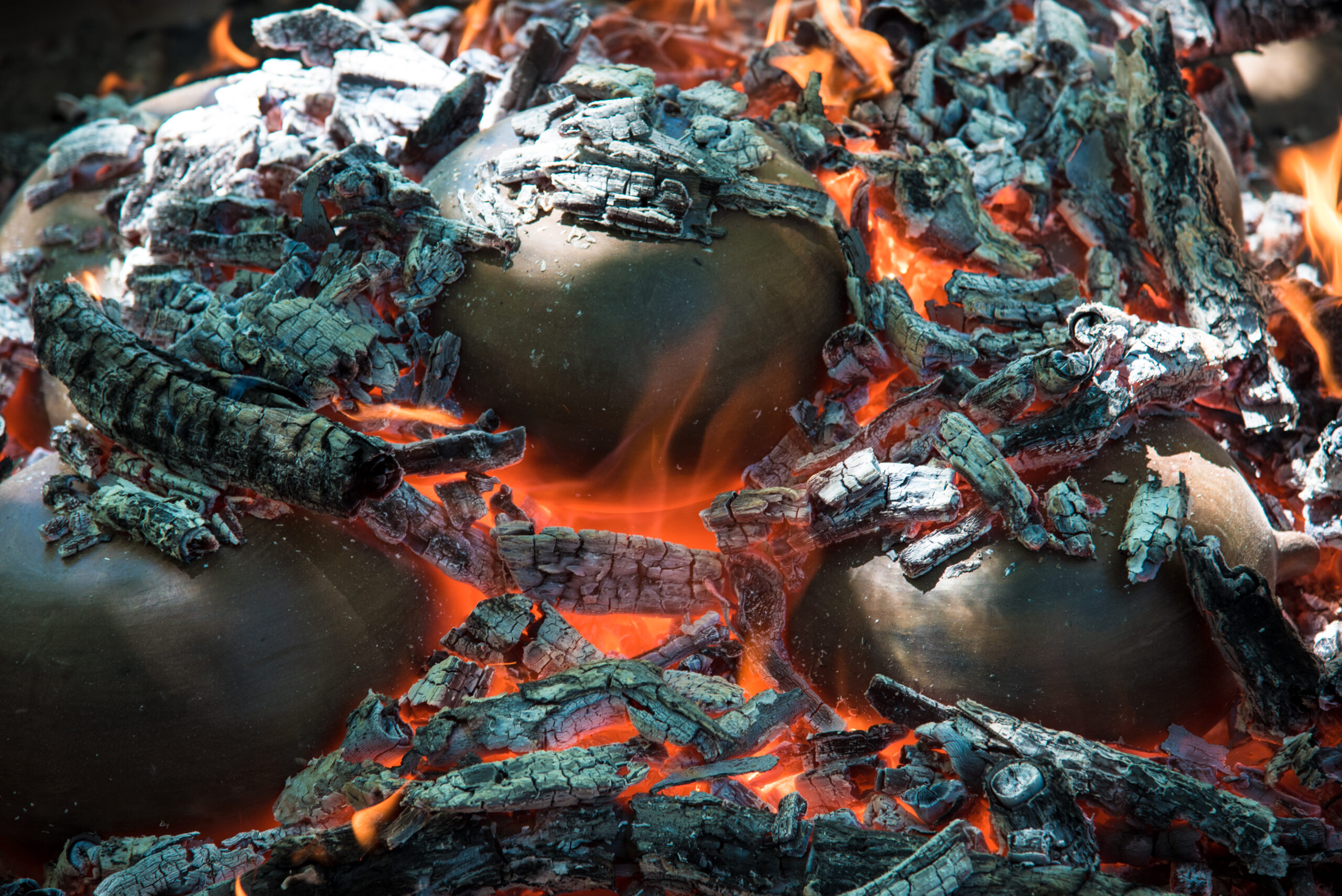 Após a queima, a cerâmica é submetida à técnica do negativo, cobrindo os desenhos antes da defumação, processo que utiliza a fumaça das folhas de mangueira para tingir as áreas expostas e criar os contrastes de cor que a tornaram mundialmente famosa.