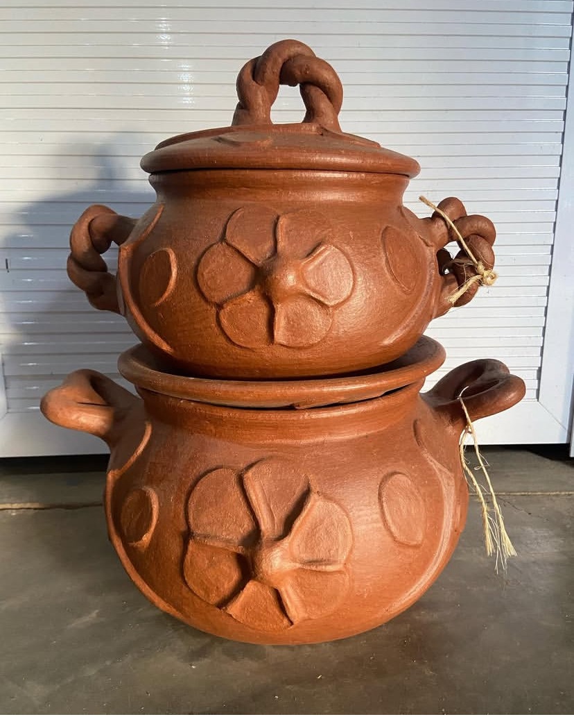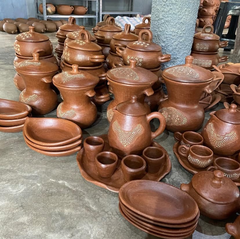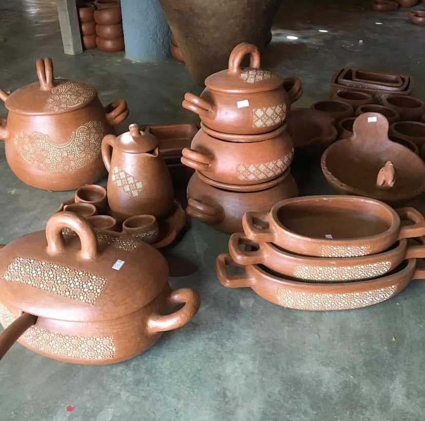 Produto: Panelas de barro. Técnica cerâmica de origem indígena — modelagem manual, queima a céu aberto e aplicação de tintura de tanino. Produtos autorizados: moquequeira ou frigideira, panela de arroz ou pirão, caldeirão, assadeira e panelas de caldo. A argila é extraída da jazida do Vale do Mulembá.