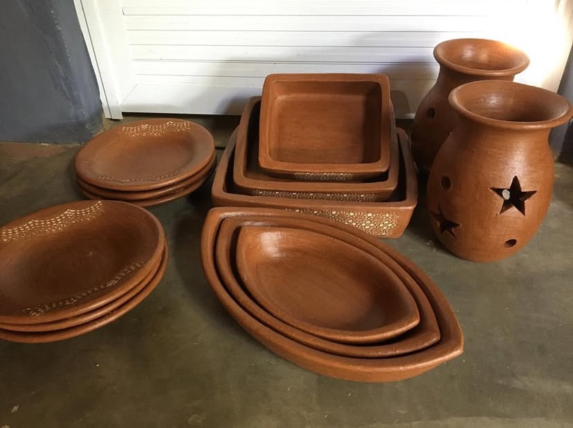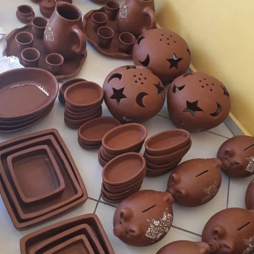 Produto: Peças de cerâmica. Produção integralmente manual (argila vermelha e roxa, areia peneirada, água potável, madeira de fontes renováveis e tintas óleo/látex). Produtos autorizados: panelas, jarros, travessas, moringas, rosas decorativas, tigelas, luminárias, pratos, cofres, xícaras, bules, canecas, cuscuzeiras, cestas, entre outros.