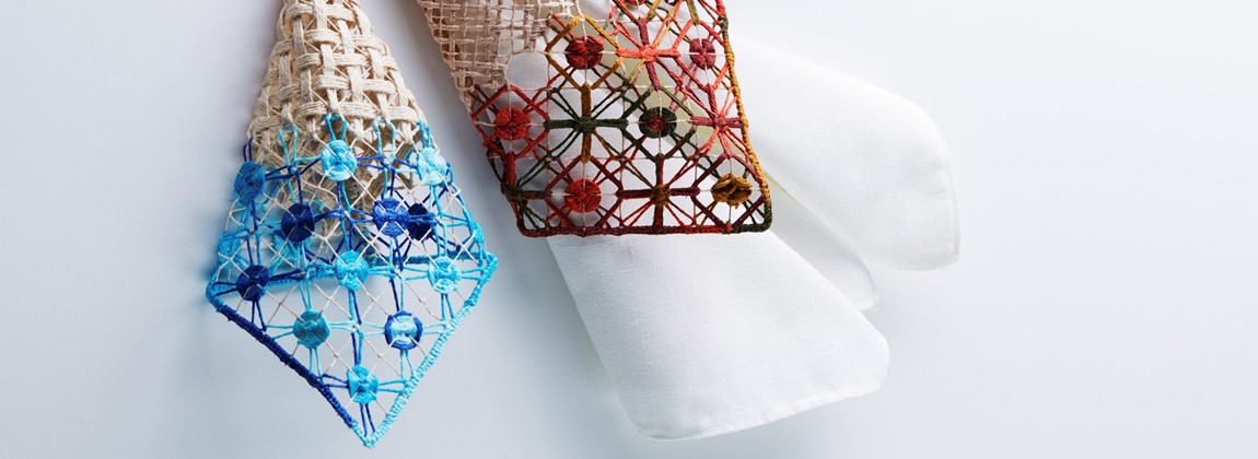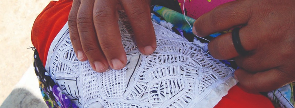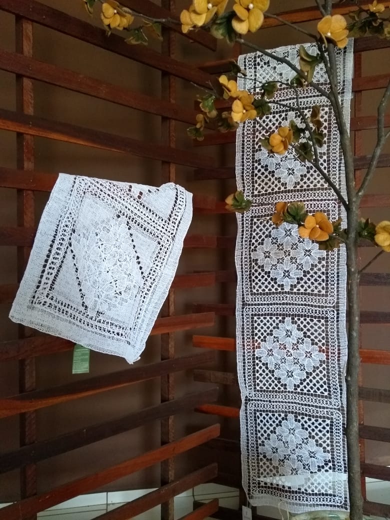Produto: Bordado filé. Elaborado sobre uma rede (malha) com espaçamento pequeno. O trabalho ocorre em duas etapas: construção da rede e preenchimento com linhas. Instrumentos artesanais: agulha em madeira, molde de bambu e telas em madeira. Finalização com goma de amido de milho. É Patrimônio Cultural Imaterial de Alagoas.