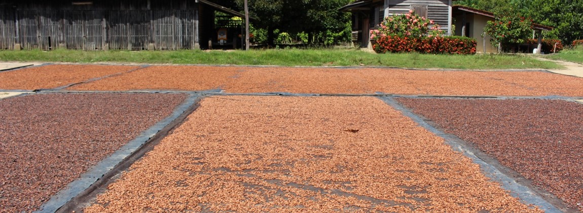 Produto: Amêndoas de cacau da espécie Theobroma cacao L. (exceto variedades transgênicas). Produção em sistemas agroflorestais do tipo Cacau-Cabruca — os cacaueiros crescem à sombra das árvores da Mata Atlântica, modelo orgânico de preservação ambiental. Padrão de qualidade: índice de fermentação mínimo de 65%, aroma natural livre de odores estranhos e umidade inferior a 8%.